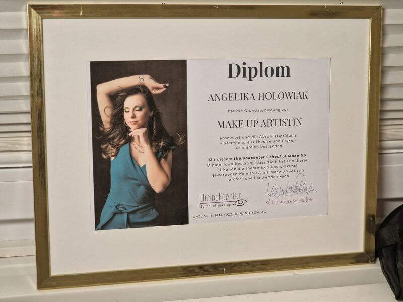 Bei der Auswahl von Make-up-Dienstleistungen ist es wichtig, einer Person zu vertrauen, die über die erforderlichen Zertifikate und Diplome verfügt, die ihre Fähigkeiten bestätigen. Mein Engagement für kontinuierliche Weiterentwicklung und das Erlangen neuer Qualifikationen garantiert, dass ich mit den neuesten Trends und Techniken im Make-up vertraut bin.