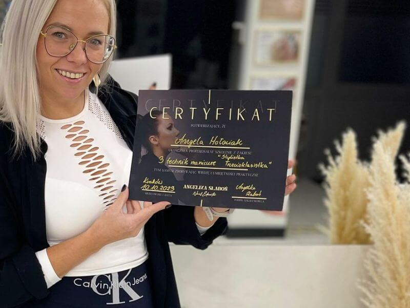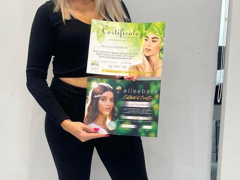 Meine Zertifikate, die professionelle Schulungen bestätigen, geben den Kunden die Gewissheit, dass ihr Aussehen in guten Händen ist. Ich kümmere mich um die Entwicklung meiner Fähigkeiten, indem ich von den besten Fachleuten der Branche lerne, was es mir ermöglicht, Dienstleistungen auf höchstem Niveau anzubieten.